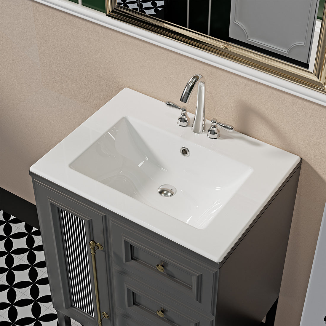 • Ceramic rectangular bathroom vanity sink overall size: 24 in. W x 18.25 in. D x 6.13 in. H