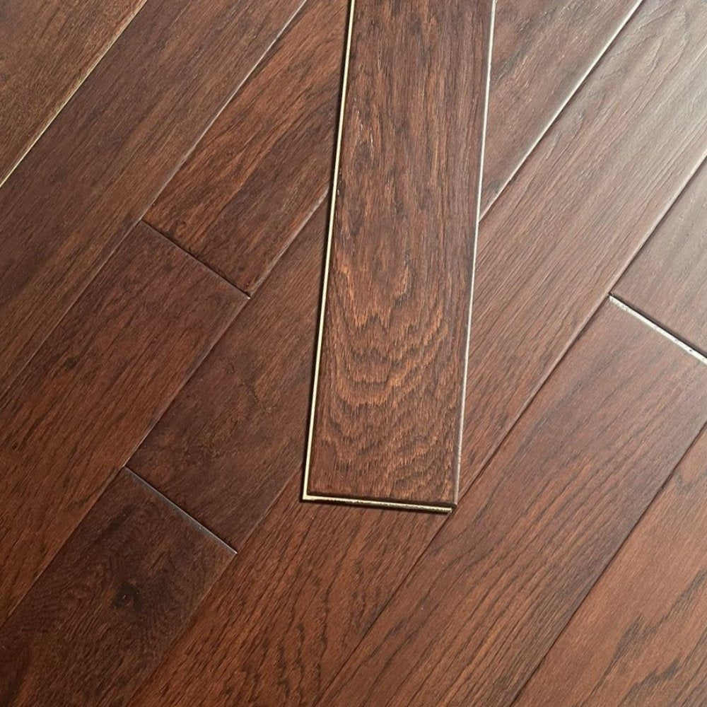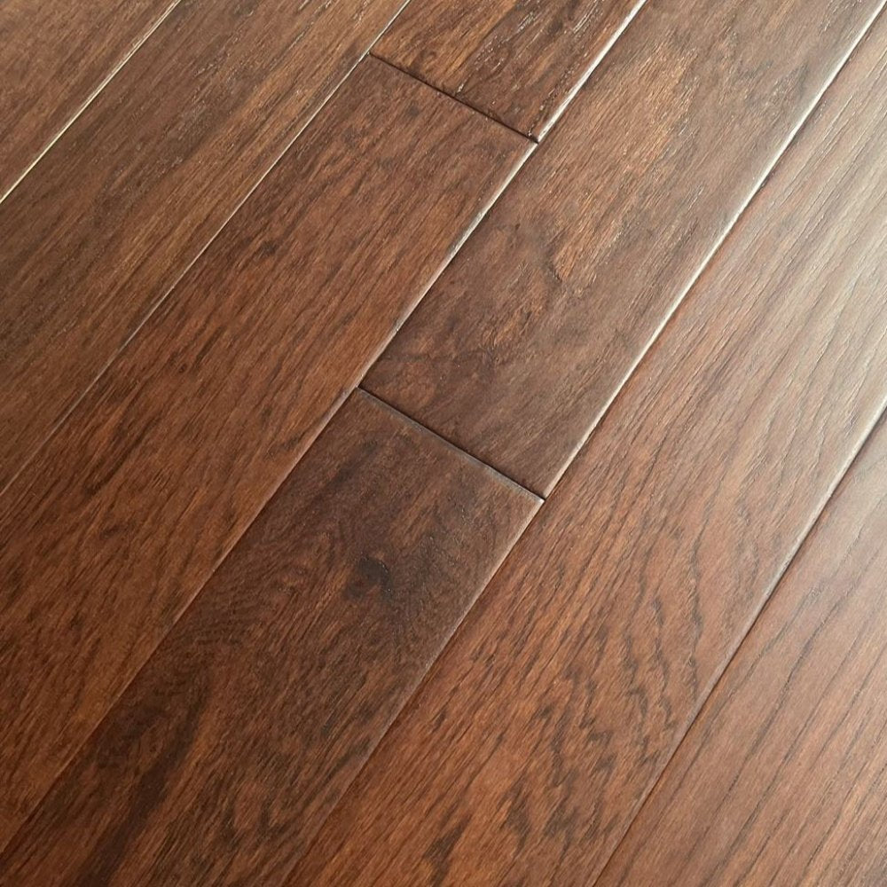 Rustic Ridge Hickory Click Locking Hand Scraped Engineered Hardwood Flooring brings warmth to your room with its rich grain and traditional textured finish. Suitable for installation on all levels, this flooring choice enhances your home's value and aesthetics. Originated in the United States, hickory is one of the hardest wood available. Bring on the pets, kids, and endless happiness in the house, this product is the foundation of your home's lasting comfort and charm.