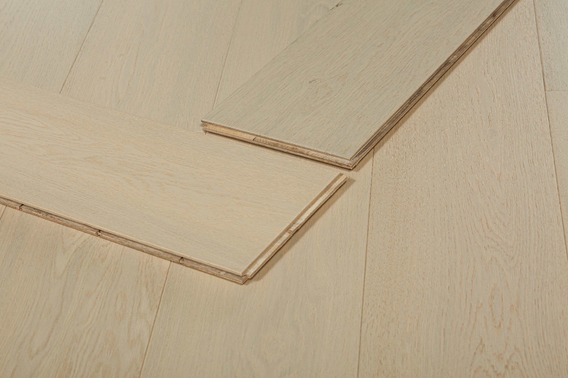 The wider plank format highlights the oak’s distinctive grain patterns, delivering a luxurious, upscale aesthetic while maintaining the authentic feel of real wood underfoot.